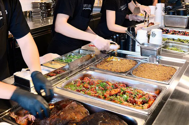 用餐採自助式用餐方式,直接在吧檯前點餐,選定肉類主餐後,一路往櫃台方向前進,途中可以選擇是否加點其他配菜。
