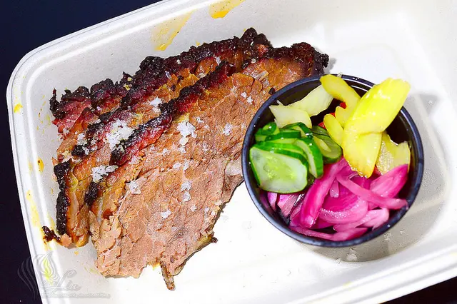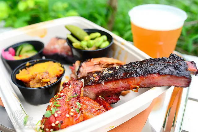 從左上順時鐘方向,依序為 牛胸肉、枝豆甜豆翠綠沙拉、手撕豬肉、豬肋排、燻辣雞翅、陶鍋甜薯泥、醃菜。 幾種配菜,有些味道特殊,有些走得路線清淡自然,我個人除了豆子是吃不太習慣,不過也是有許多現場的記者朋友們很愛。 美食嘛~ 見仁見智! 台灣人習慣吃熱騰騰、多汁的餐點,這裡提供的則是味道濃厚的冰涼餐點,肉汁大多也已經在肉裡捉迷藏去了。 如主廚所云,台灣是個多元的地方,可以不喜歡麥迪昆的食物,但它確實也有喜歡的人,就看合不合口味囉~!