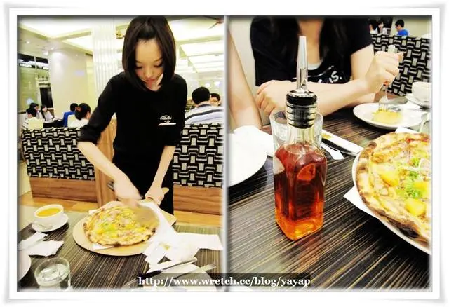 突然,店員竟然拿來一盤PIZZA要請我們吃耶!