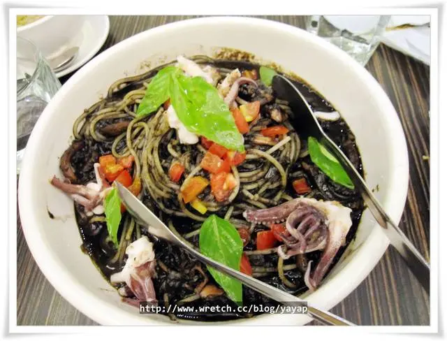 這是我第一次正式的吃到墨魚麵,但我本來以為墨魚麵本身麵就是黑色的耶~