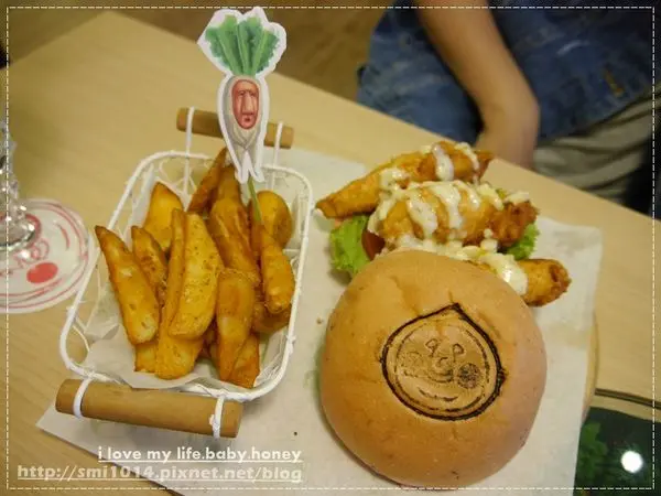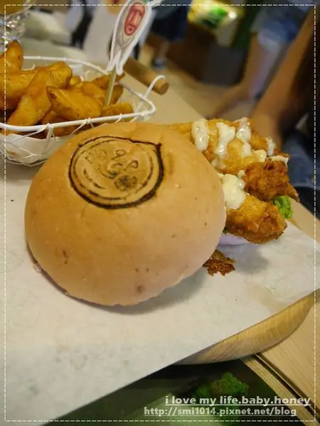 漢堡上面還有屁桃的臉烙印在上面 顆顆