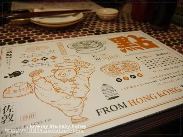 手繪的功夫豬廚師不管在餐墊,MENU內頁,店內裝潢都可以看到他