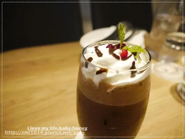 這個莓果黑森林完全和DM上面的照片不一樣,端上來時服務人員已經先將飲料攪拌均勻了