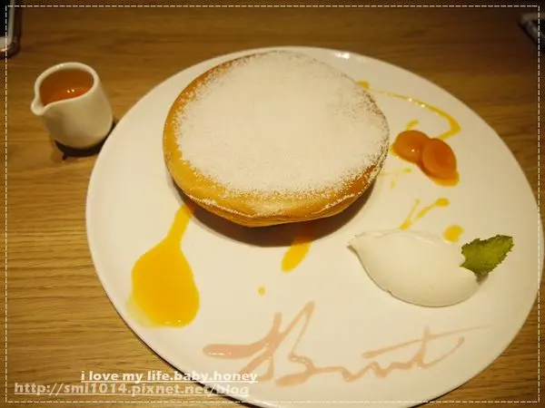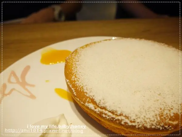整體感覺就是一般的厚鬆餅上面灑滿糖粉之類的