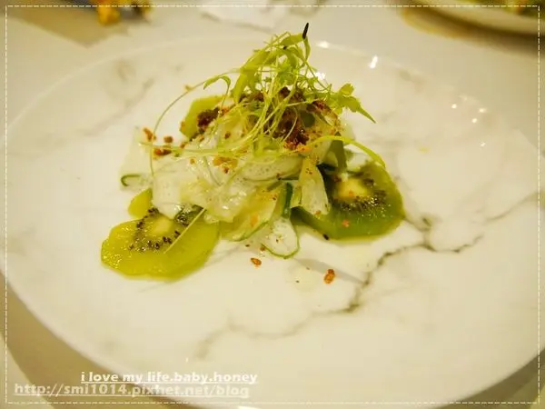法式前菜精緻可口,搭配堅果的點綴 提升羅勒的香氣