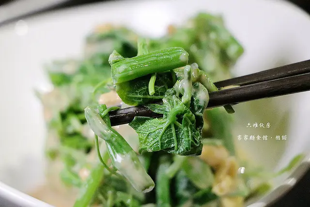 脆脆的龍鬚菜搭配胡麻醬讓風味吃起來更加爽口