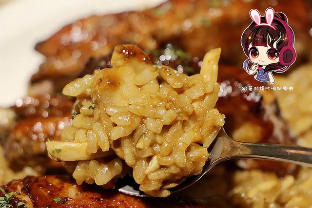 覆蓋於下方的燉飯吃起來也很夠味 完完全全的吸收高湯精華