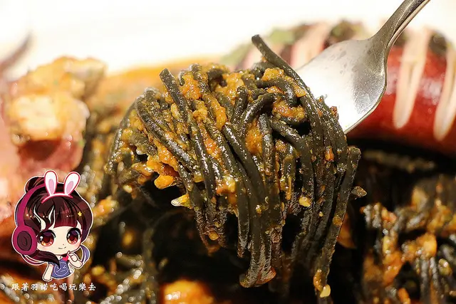 義大利麵麵條的部分 吃起來軟硬適中 而且是特製的墨魚麵條