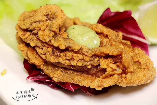 炸花枝的口感很有嚼勁 擠上檸檬汁吃起來更清爽喔