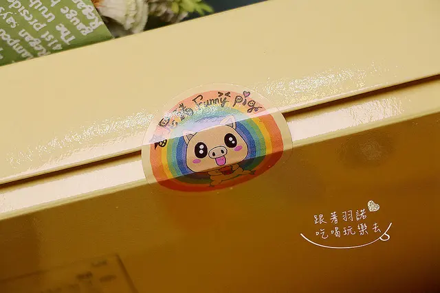盒身側邊還有使用小豬圖案的貼紙貼著 防止運送過程盒身上下分離