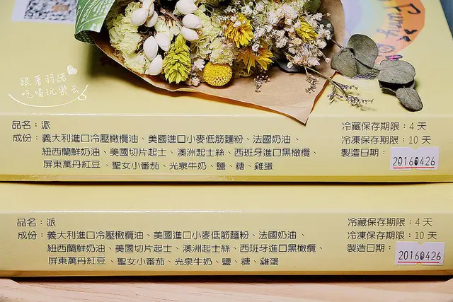 製造日期 保存期限及成分都清楚的寫在盒身側邊了冷藏保存期限可以保存4天 冷凍保存則可以保存10天由於Funnypig番尼豬的甜派 鹹派全程均由手工現做 所以訂購後大概要再等2~3天才會出貨唷!!不過Funnypig番尼豬無論用料及製作過程都是很有品質的 所以等待是值得的啦