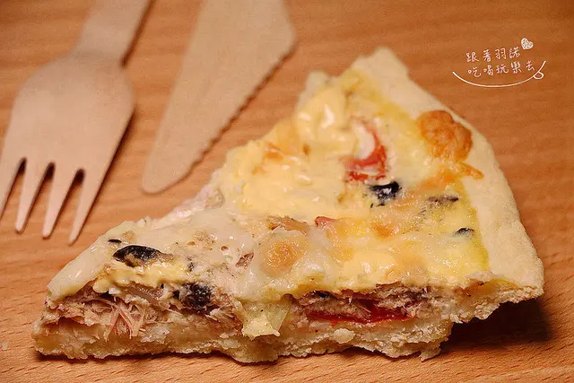 看看這切開的樣子 用料是不是超豐富啊~經過微波加熱後 輕咬一口便可感受到半融的起司最口中縈繞再搭配宜蘭捕撈的鮪魚及聖女小番茄入口更是風情萬種~口口都嘗得道迷人的魅力!!而且Funnypig番尼豬在製作派皮的過程是不加任何一滴水的所以派皮除了口感札實外 香氣也挺濃厚的 此外 Funnypig番尼豬使用的原物料也都堅持是無漂白麵粉 無添加防腐劑及化學成分的 就是要讓大家