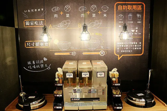這區是自助區 有味噌湯 玄米煎茶 檸檬水都是無限供應的 一旁還有調味料及餐具