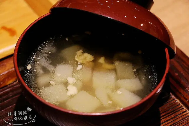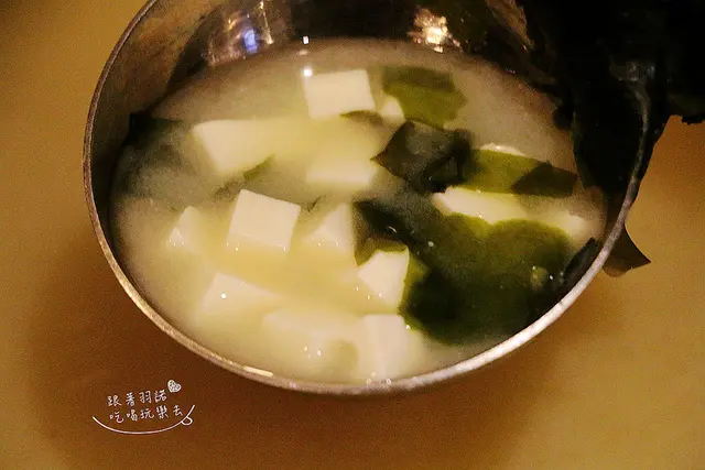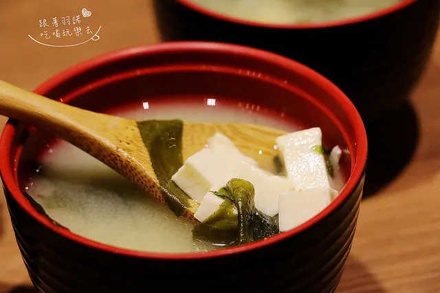 一坐下就忍不住趕快裝一碗味噌湯來喝喝 喝起來不會死鹹