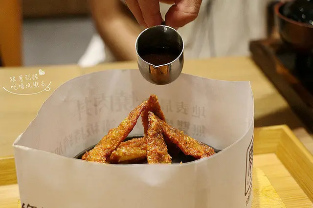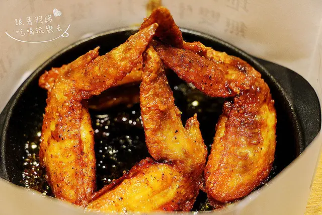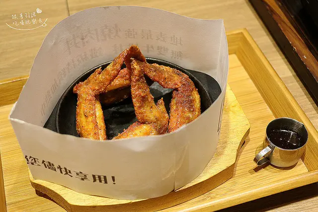 鐵板燒熱後放上現炸雞翅 服務生會再淋上照燒醬汁