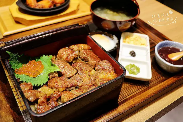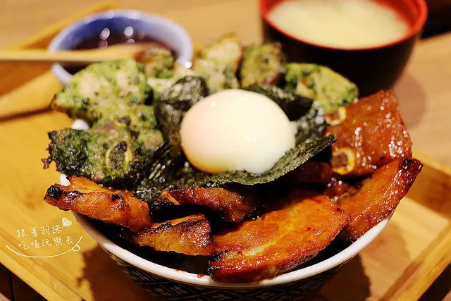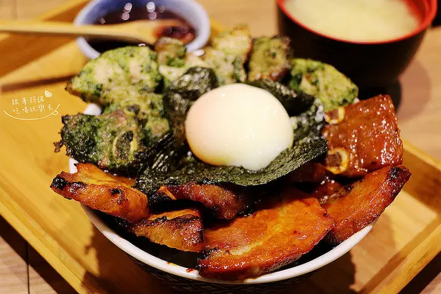 開丼選用台灣豬子排 肉質比較有嚼勁 口味分為赤味噌及青醬雙重口味