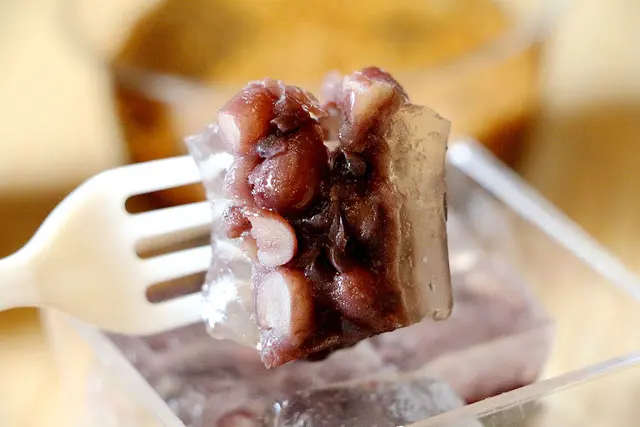 紅豆顆粒內餡加上QQ軟軟的涼菓子 一起入口 非常美味