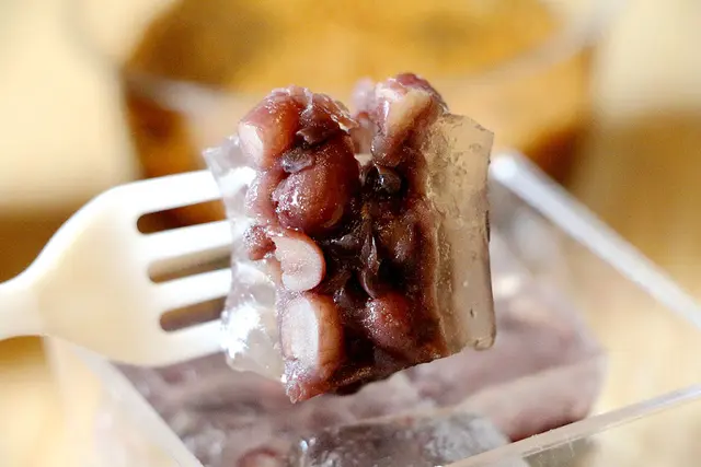 紅豆顆粒內餡加上QQ軟軟的涼菓子 一起入口 非常美味