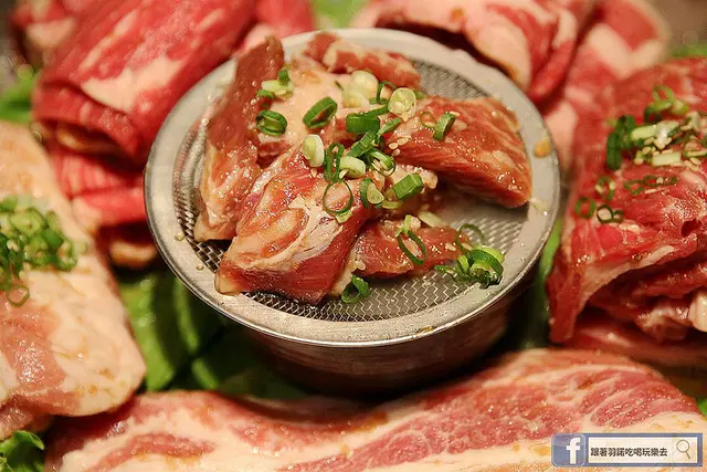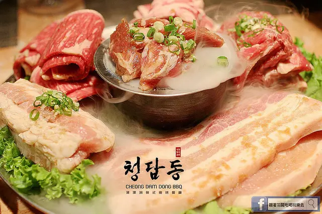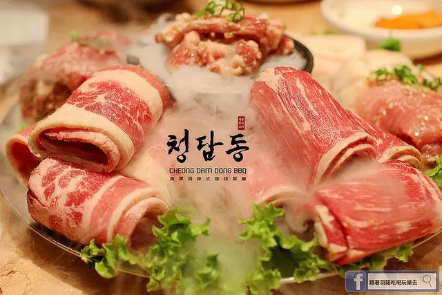 這一份牛豬組合盤上桌時周圍還圍繞了乾冰所散發出的煙霧看起來浪漫夢幻啊這可是由韓國烤肉中最富盛名的牛五花與豬五花及韓國獨特刀法切出的美國帶骨牛小排及去筋護心肉所組成其正宗之名來自於韓國主廚特調的韓式醃醬將其肉品醃製48小時入味同時冷藏備用