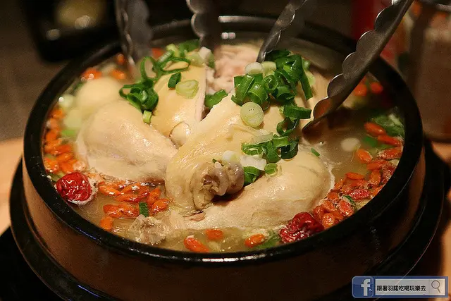 元氣鮑魚人蔘雞湯朋友都到齊後 就準備上一道菜啦這個鮑魚人蔘雞湯聽起來就很厲害特別使用人蔘切片後 再與韓國進口的3年人蔘 紅棗 枸杞 糯米等等食材下去熬煮一整鍋料多豐富的人蔘雞湯在此呈現
