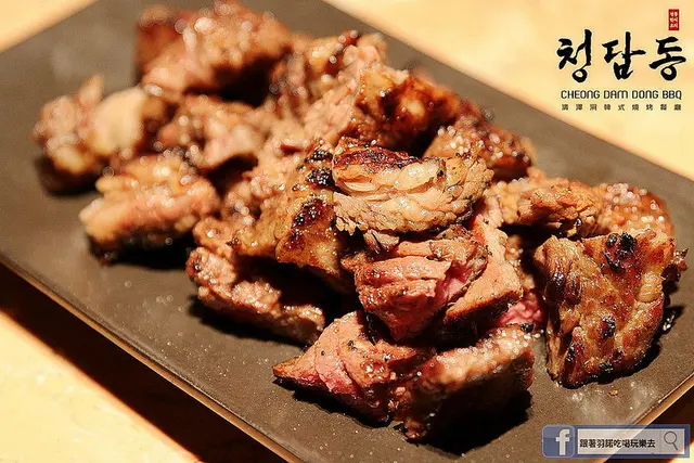 因為傳統的韓式醃醬必須有著新鮮果香所以清潭洞特別使用韓國進口的新鮮梨子醬與醬油再搭配蘋果泥 洋蔥泥 蒜泥及些許的月桂葉來調配其成 能在包廂裡頭享受到桌邊服務燒烤實在太幸福了如果是讓諾咪自己烤應該已經焦掉了><
