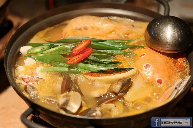 裏頭加入了不少的海鮮與店家特製的醬料熬煮喝起來有股淡淡的鹹香味!!邊大啖肉肉邊喝上這個一碗 風味很棒呢