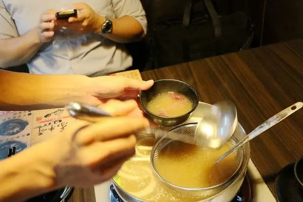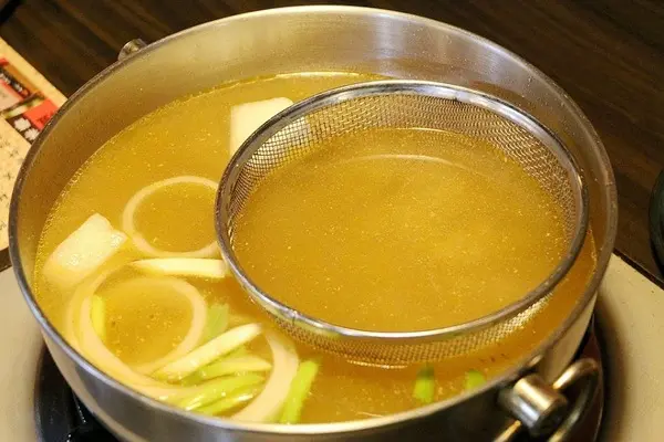 鍋底的湯頭是以店內自己炒的沙茶急扁魚熬成扁魚湯