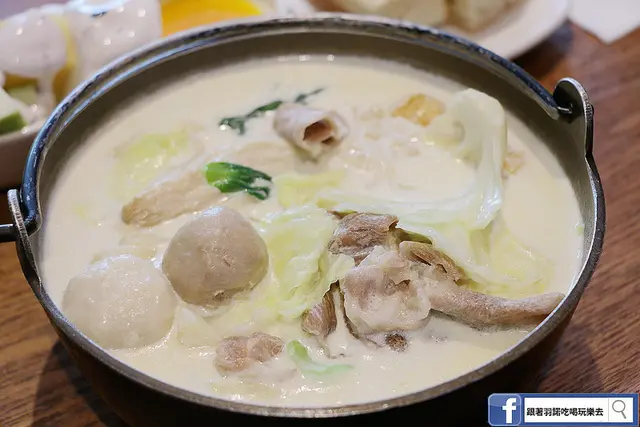 香濃起司牛奶鍋裏頭加入了讚崎烏龍麵貢丸 肉片 蔬菜 等等豐富配料這牛奶起司湯頭喝起來非常香濃呢 搭配烏龍麵飽足感十足當裏頭的配料吸足湯之後品嘗顯得更加可口