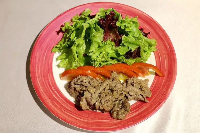 搭配酸甜紅酒醬醋特調醬汁及生菜入口多了甘甜清爽