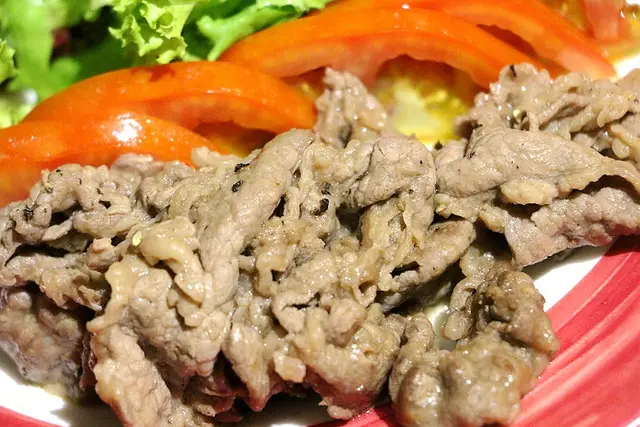 以蒜香及白酒炒過Prime頂級牛肉五花片