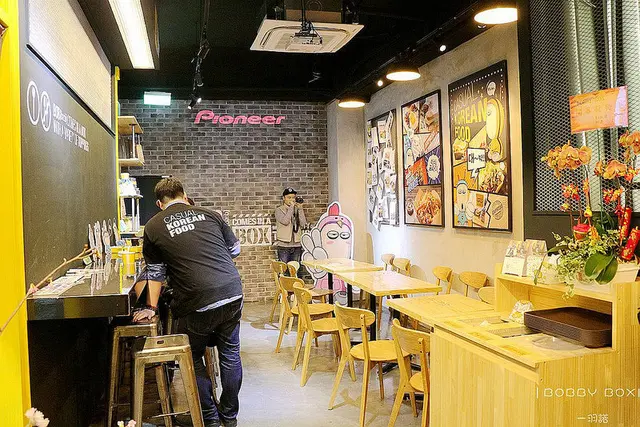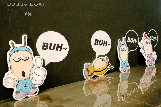 店內還擺放著各式各樣的可愛小立牌而這個my bottle 隨行杯 店家只送不賣 而 因為BobbyBox主打飯食 還裝入白米 相當吸睛呢!!Bobbybox設計的外帶盒也都蠻可愛的 都有黑眼圈瞇瞇眼O翻白眼X可愛logo這邊都是採自助式 享用完餐點都是自行回收的牆面上還有可愛漫畫呢!! 桌上也有一雙黑眼圈瞇瞇眼在看著大家吃飯呢!!
