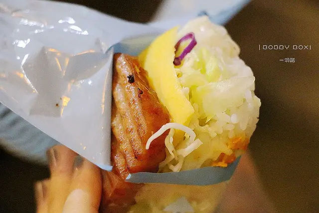 一打開來 感覺有點像是米漢堡的概念 內有餐肉(有點像香腸肉)煎蛋 生菜和米飯