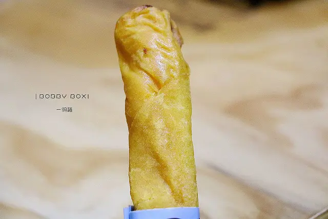 今天吃到的是地瓜口味 外皮吃起來有點像是春捲皮酥酥脆脆的可惜的是當天有點冷掉 熱一點吃應該更好吃 地瓜餡口感蠻綿密的