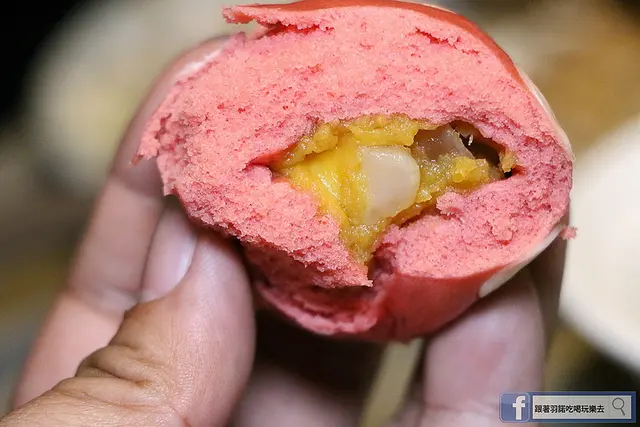 像這一棵粉紅色的蘑菇形狀裏頭包裹的是起司地瓜