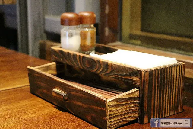 餐具都放置於餐桌上的木盒中~