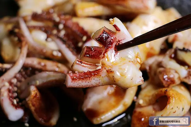 彈牙的魷魚使用店家特製醬汁提味後更加好吃啦!!