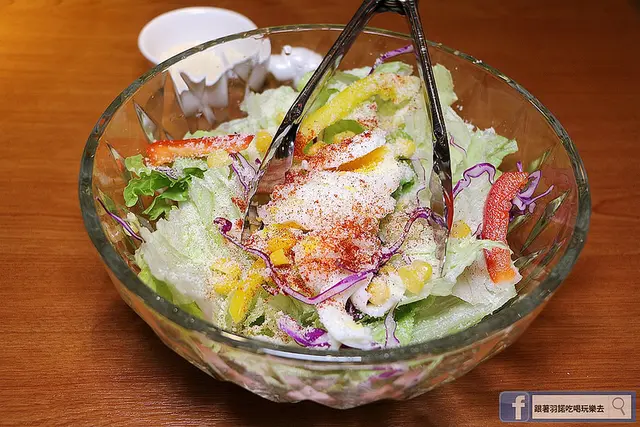 淋上凱薩醬鮮蔬沙拉吃起來頗清爽的