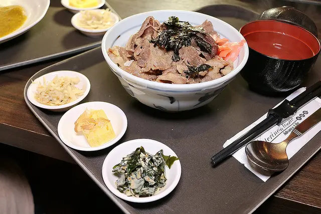 主餐除了有頂級日式牛絞肉咖喱 牛丼 居野頂級照燒豬肉外