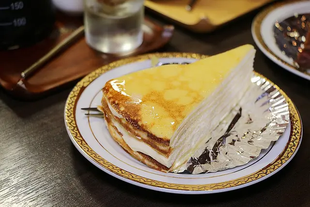 當然這塊千層蛋糕也不例外 一上桌諾咪就用最快速度把它喀完了