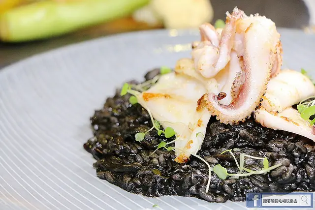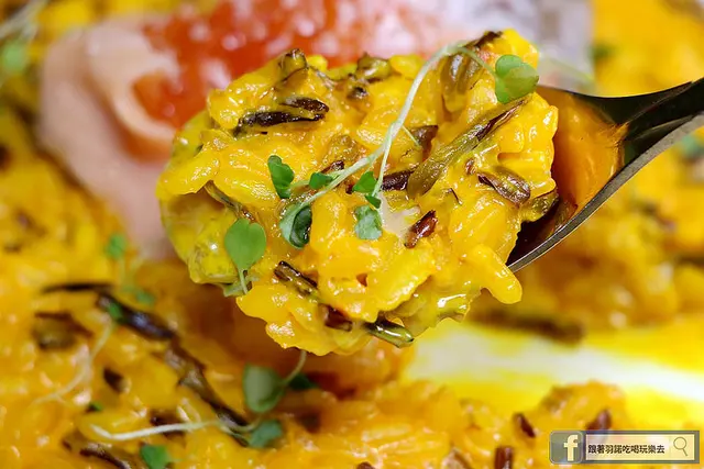 以番紅花 鮮奶油 黑野米 帕瑪森起司 白酒 洋蔥 香草料理
