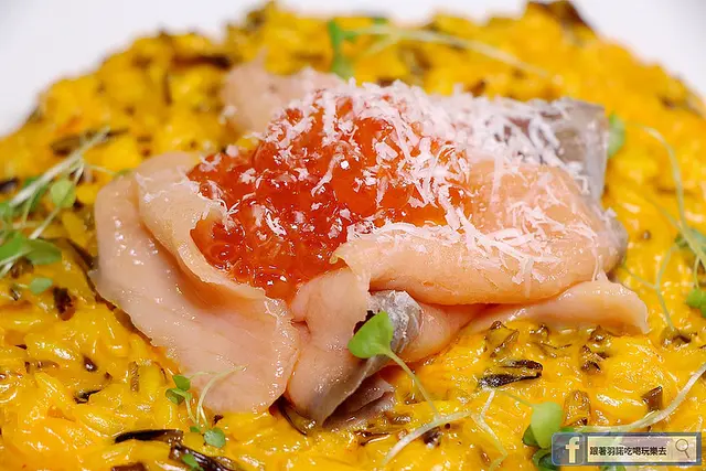 煙燻鮭魚紅花奶油鮭魚卵燉飯