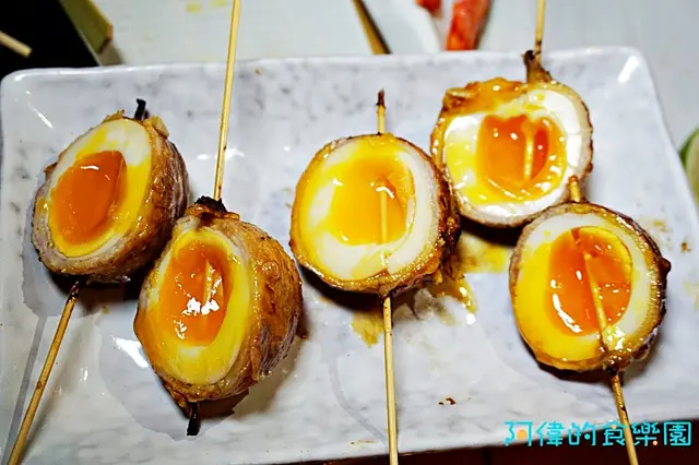 這道超厲害!除了蛋黃有著黏稠又香的水準,外面還用豬五花包裹著炸過,再沾上特調的燒烤醬汁,帶點甜甜的口感,好吃到不行啊!