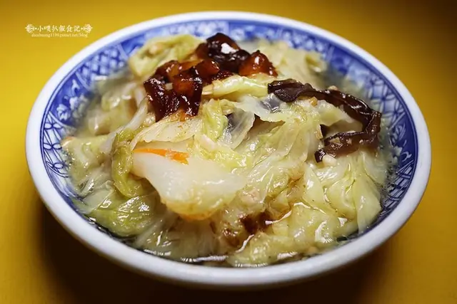 白菜滷製相當鹹香夠味還有加蝦米入味,口感也軟爛好吃,上面淋上飄香的香菇滷汁,相當可口的小菜