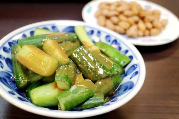預約席的桌上,都已先放上了小菜,這胡麻黃瓜看起來很可口,