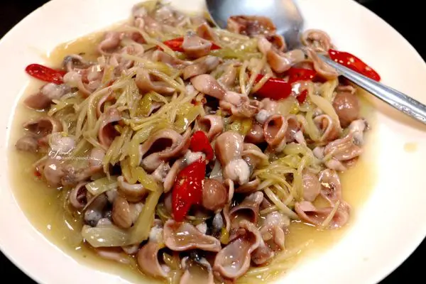 至於味道,就如同大家吃過的客家料理薑絲炒大腸是一樣的,只是酸度較不明顯,
