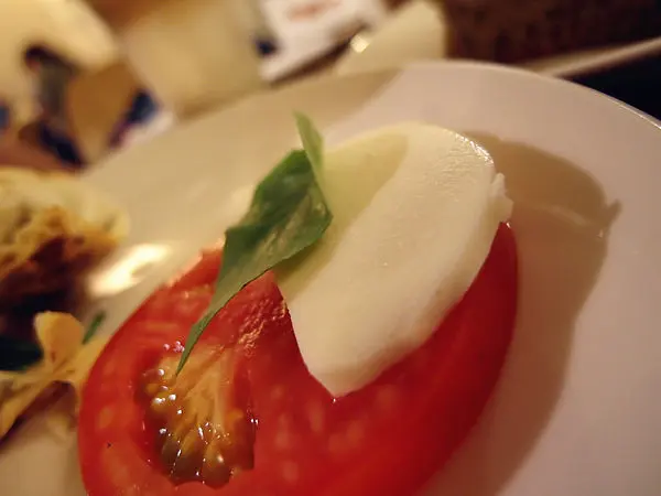 旁邊的配料是甜菜根和起司番茄