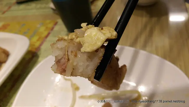 一口吃下蘿蔔糕除了有濃濃的蘿蔔味外,還吃到蝦米肉末阿,讓整個蘿蔔糕添色不少!