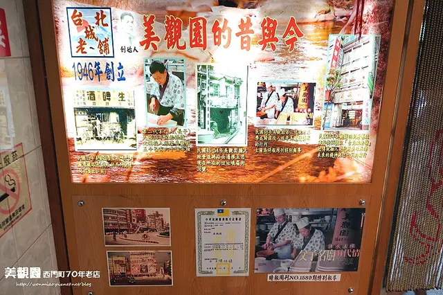 樓梯入口處有美觀園的昔與今,隨著時代的變遷,或許有些改變,