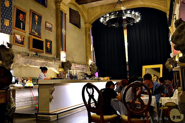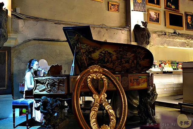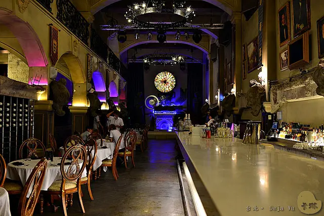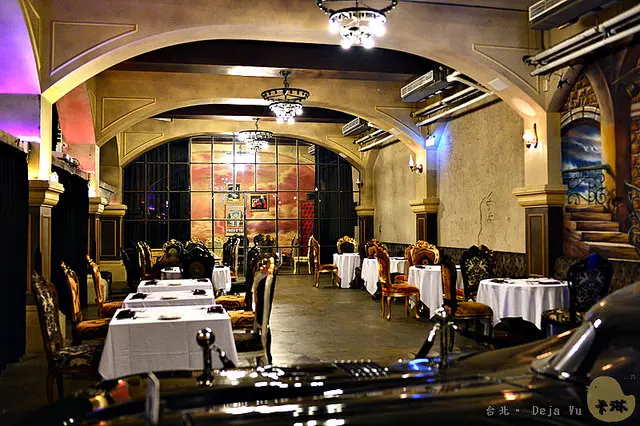 Déjà vu 法文之意為「似曾相識」,這間餐廳也的確曾為電影《熊貓人》的拍攝場景,拍攝結束後也留下了這些鷹型石雕及歐式佈景,因此會讓部分客人有似曾相識之感。除此之外,更有完全依據電影《蝙蝠俠》從美國訂製的一比一「蝙蝠車」,搭配特殊3D壁畫,讓來到店裡的客人都不免要拿著手機拍照留念一番。另外,也有搶眼的巴洛克風格的古董鋼琴加上重型哈雷機車~!
