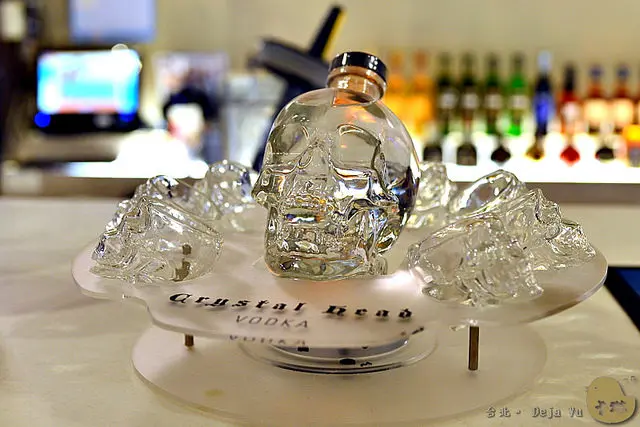 吧台上放了些裝飾性的酒瓶,有Ed Hardy、Christian Audigier、以及連杯組都有的Crystal Head Vodka~